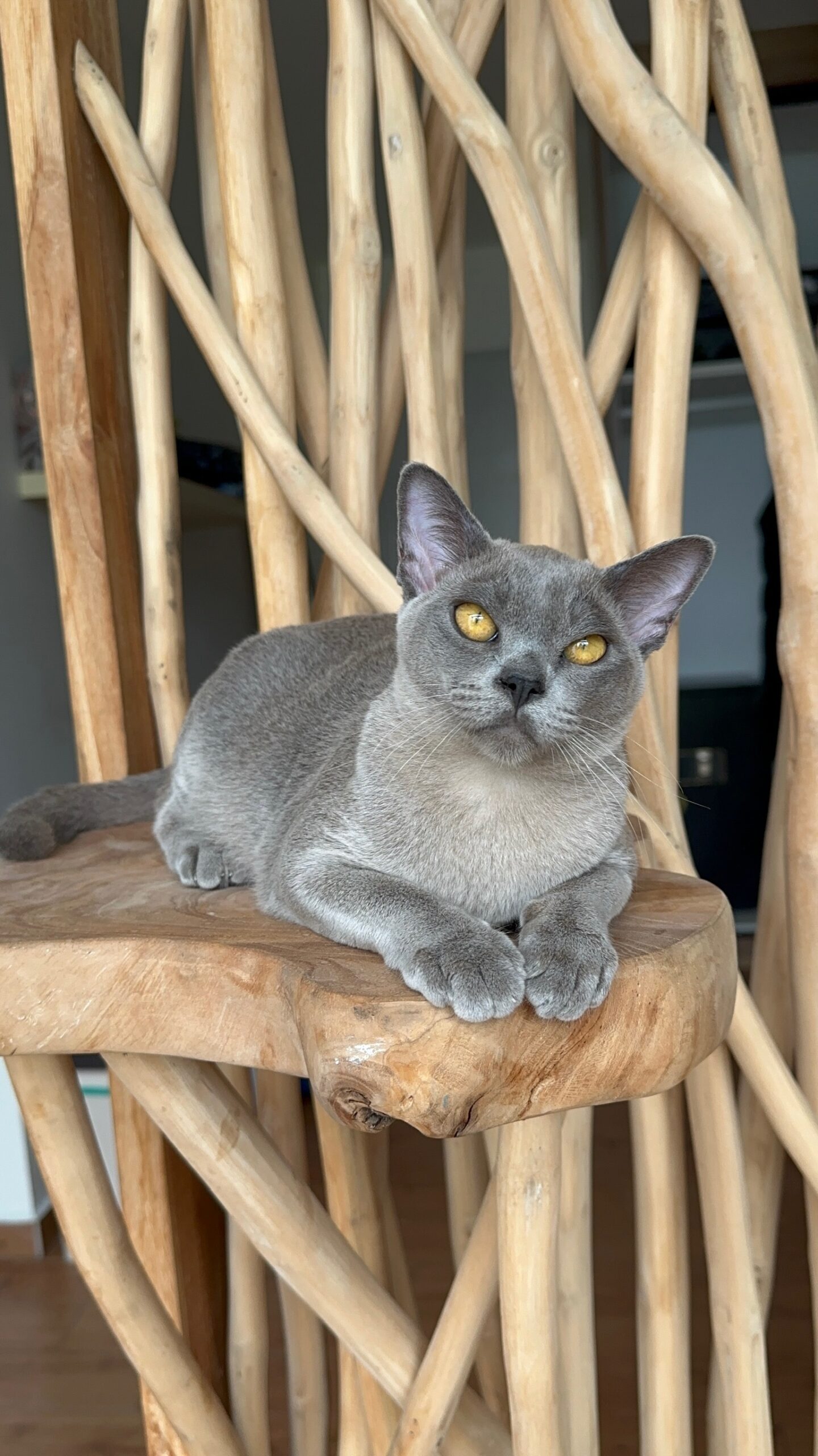 He’s curious, gentle, and full of energy. His kittens inherit his compact structure, intelligence, and easygoing nature.